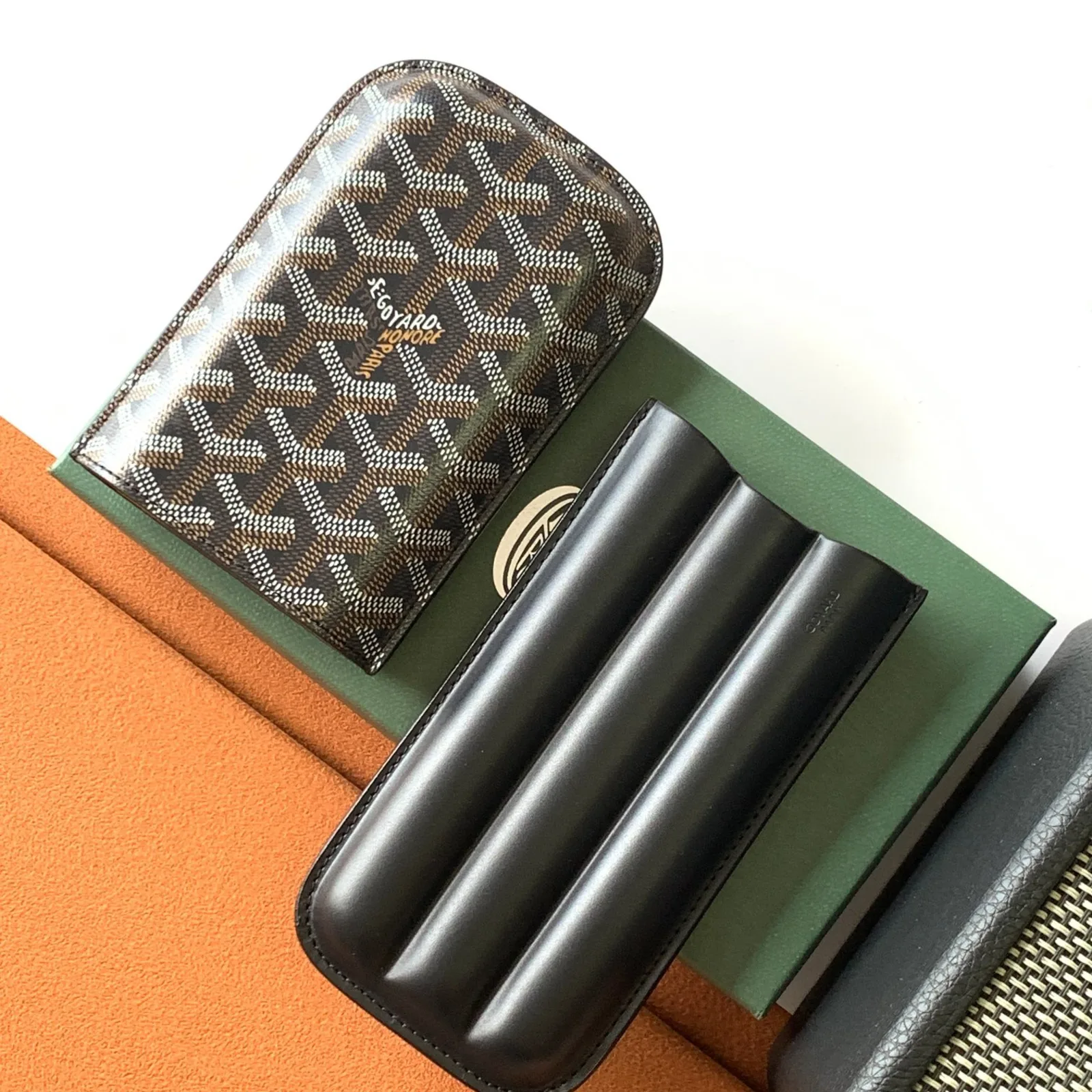 The Goyxrd Churchill 3 Cigar Case is a refined travel accessory designed to protect and carry three cigars, especially Robusto formats. Crafted with Maison Goyxrd’s traditional expertise, its molded construction ensures cigars are held securely while retaining a compact silhouette. The Churchill range makes the perfect gift for any cigar connoisseur.